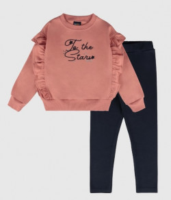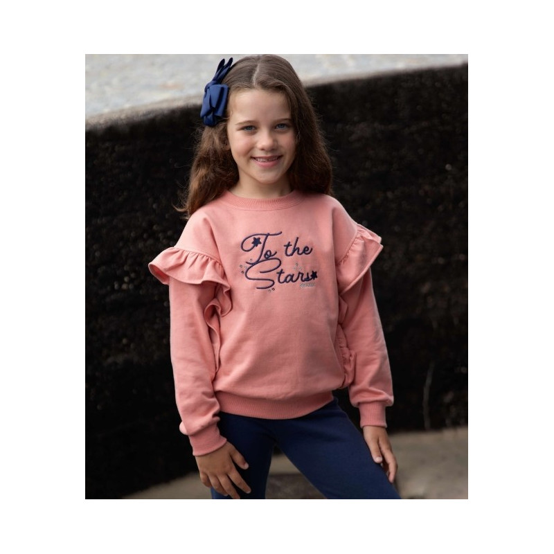Conjunto legging con sudadera bordada en la parte delante con detalle de volantes.