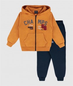 Conjunto compuesto por chaqueta bordada en la parte delantera. Bolsillo canguro. Pantalón con bolsillos y puños. Interior afelpado.