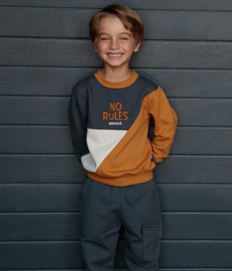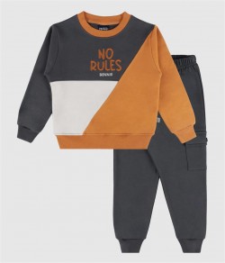 Conjunto compuesto por sudadera con inserciones. Bordado en la parte delantera. Pantalón con cinturilla elástica y bolsillo lateral. Interior afelpado.