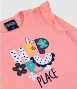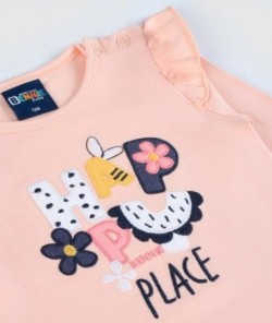 Conjunto compuesto por camiseta de manga larga con bordado delantero y detalle de volantes en mangas. Legging con bordado.
