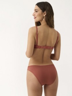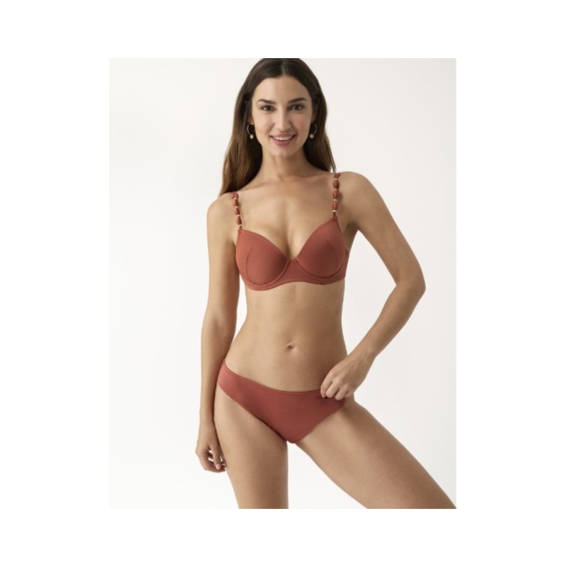 Sujetador con foam y aros para ofrecer un busto natural y pecho redondeado. Braga bikini a juego.
