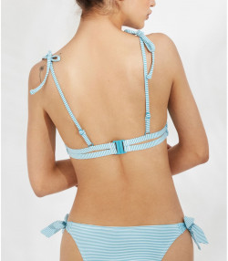 Rayas mare en este top triángulo copa B. Tirante con lazada a hombro para una mayor personalización en función de la silueta. Incorpora relleno extraíble para mayor naturalidad. Combínalo con la braguita que más te guste de la colección para un total loo
