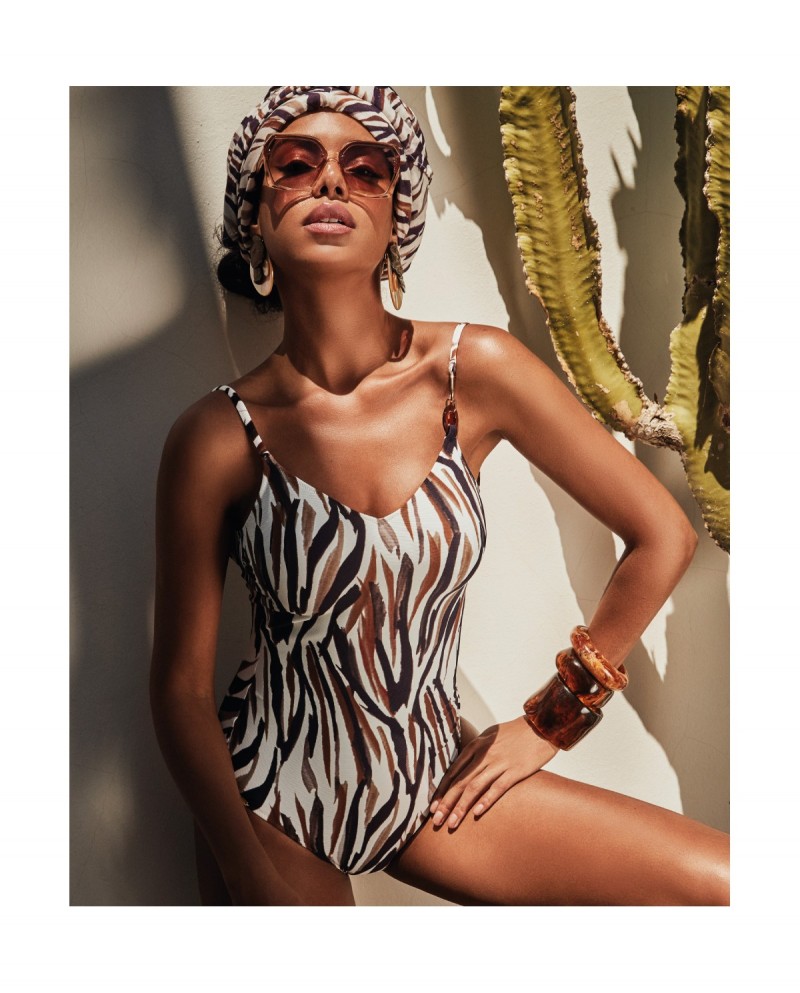 Bañador de escote alto con tirantes multiposición. Con copa interior y sin aro.