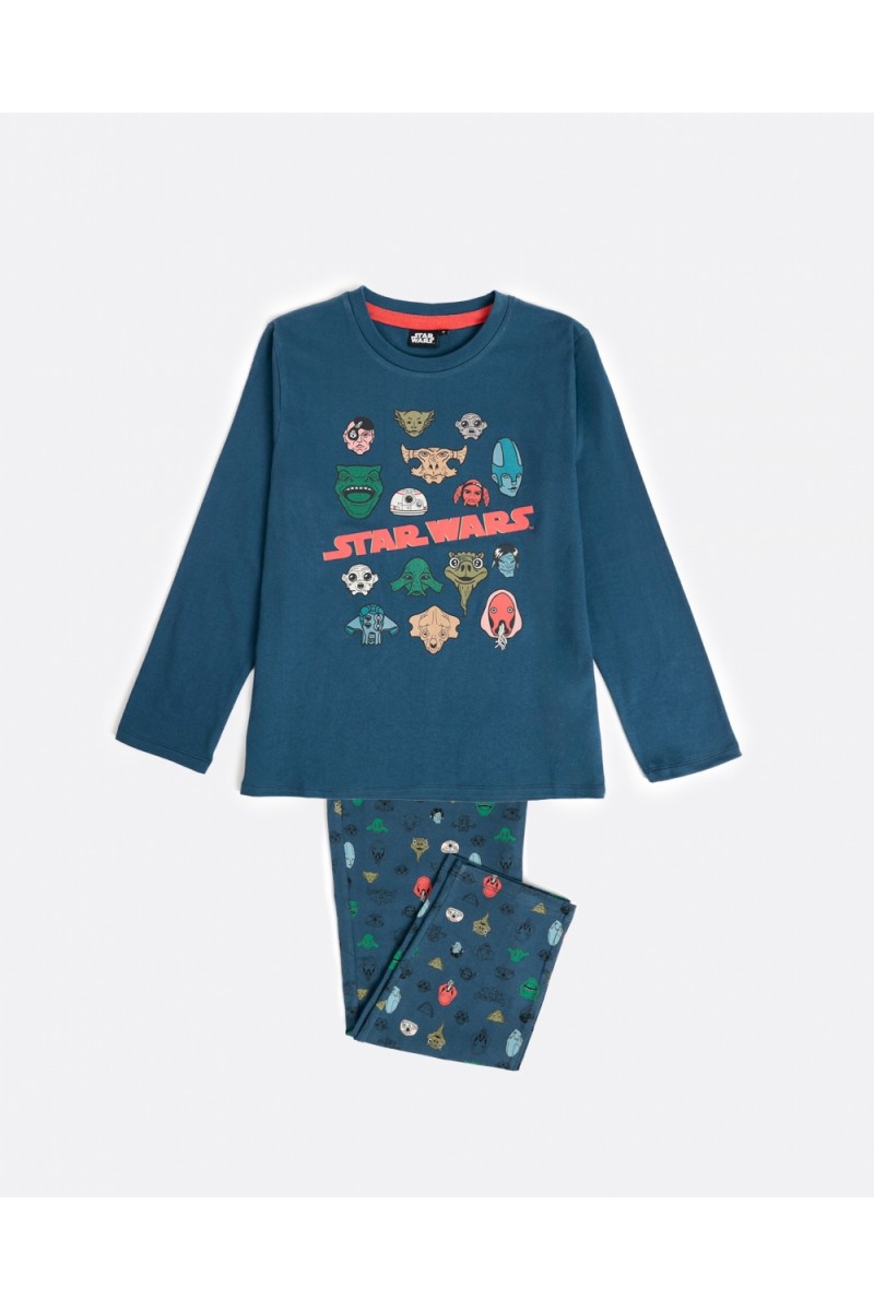 Pijama con camiseta de manga larga con estampación frontal. Pantalón estampado, con cinturilla ajustable. Tejido suave al tacto.